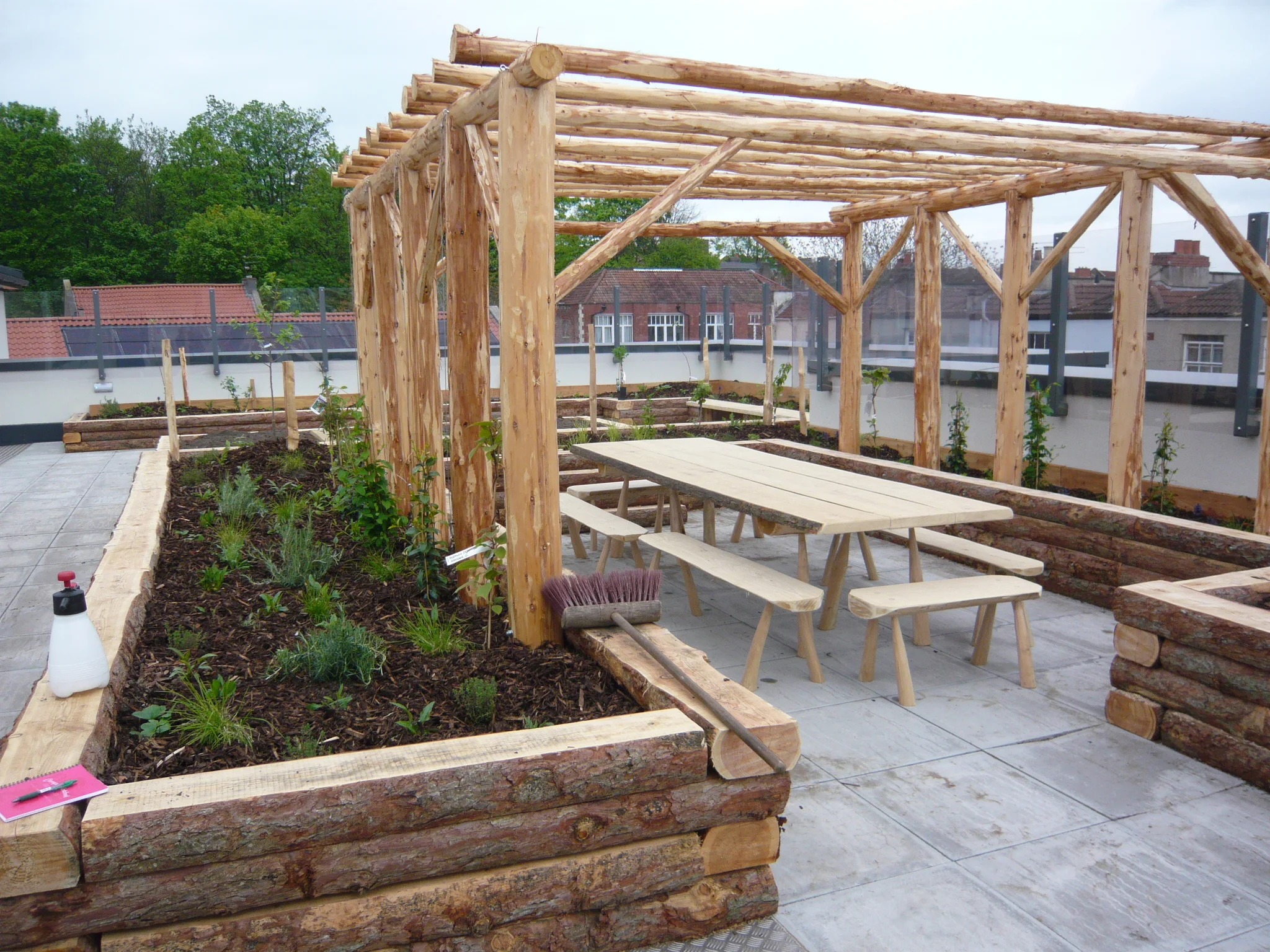 We worked closely with the students and teachers to create a garden that worked with their needs. We made an edible garden that could be used to explore soil sciences, food growing, water cycles, ecosystems, closed loop systems and much more. We created a large table and inbuilt seating for shared activities, a water feature, insect hotels and spaces for the children to put artworks. We built a large pergola to provide shade and homes for birds and insects.